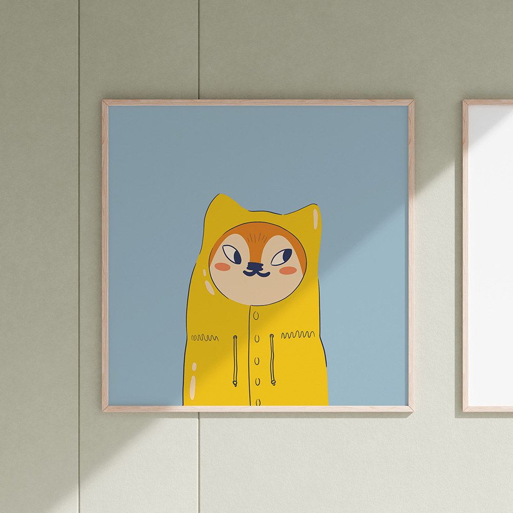 Rävvår är en digital illustration av Frida Rosvall och ingår i en serie verk som porträtterar djur i olika årstider. Med mjuka former och ett lekfullt uttryck skildrar verket ett fantasifullt djurporträtt som bjuder in till glädje, igenkänning och berättande – och passar lika bra i barnrummet som i mysmiljön.